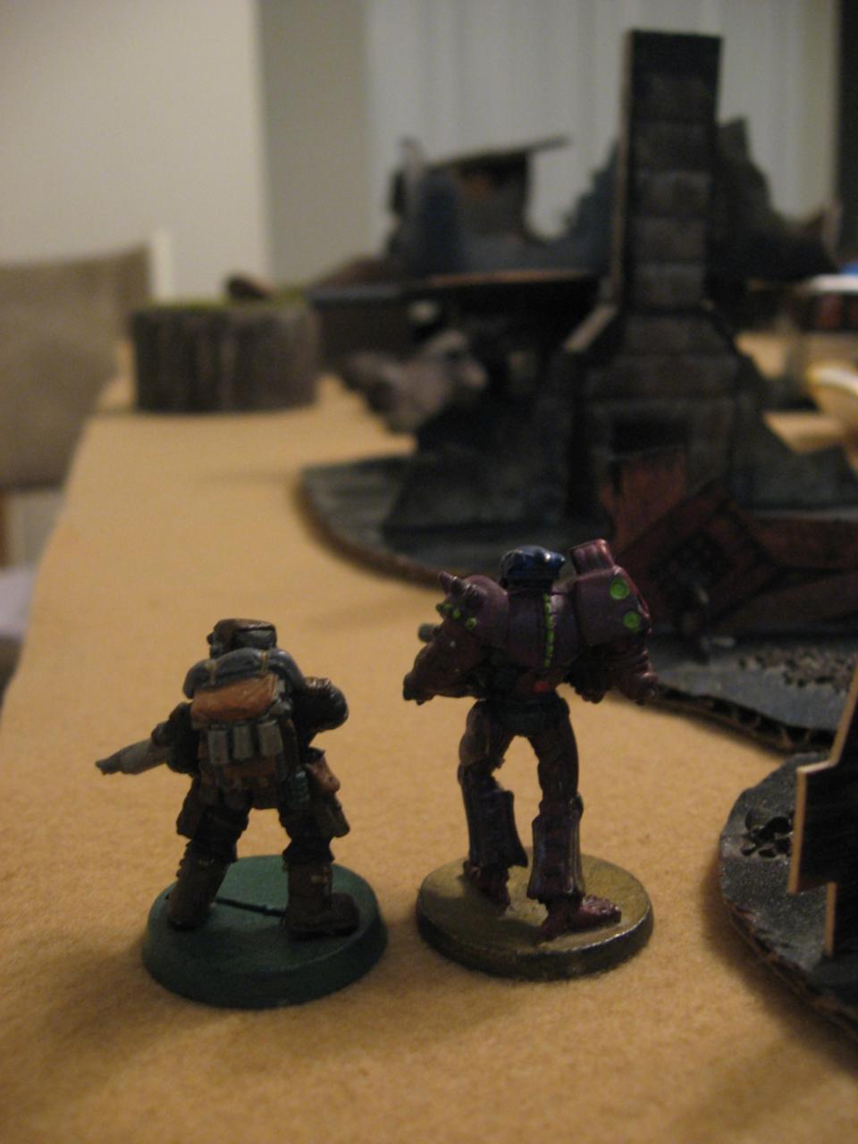 Duskhelm: Mitis’Heq moved forward so he was at long range against Stone Axe, then he fired at a horrible 11+ to hit. High armor, distance, and movement meant it was a tough shot, and unfortunately I missed with all my rolls.
