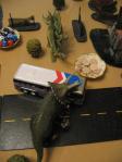 I rolled randomly for setup, with Duskhelm getting north (towards my kitchen) and Coleman getting south (towards my door). Both Posses could deploy up to 8″ in from their respective short table edge. Duskhelm had to set up first, followed by Coleman, followed by the start of one of my favorite games of Dinosaur Cowboys to date…
