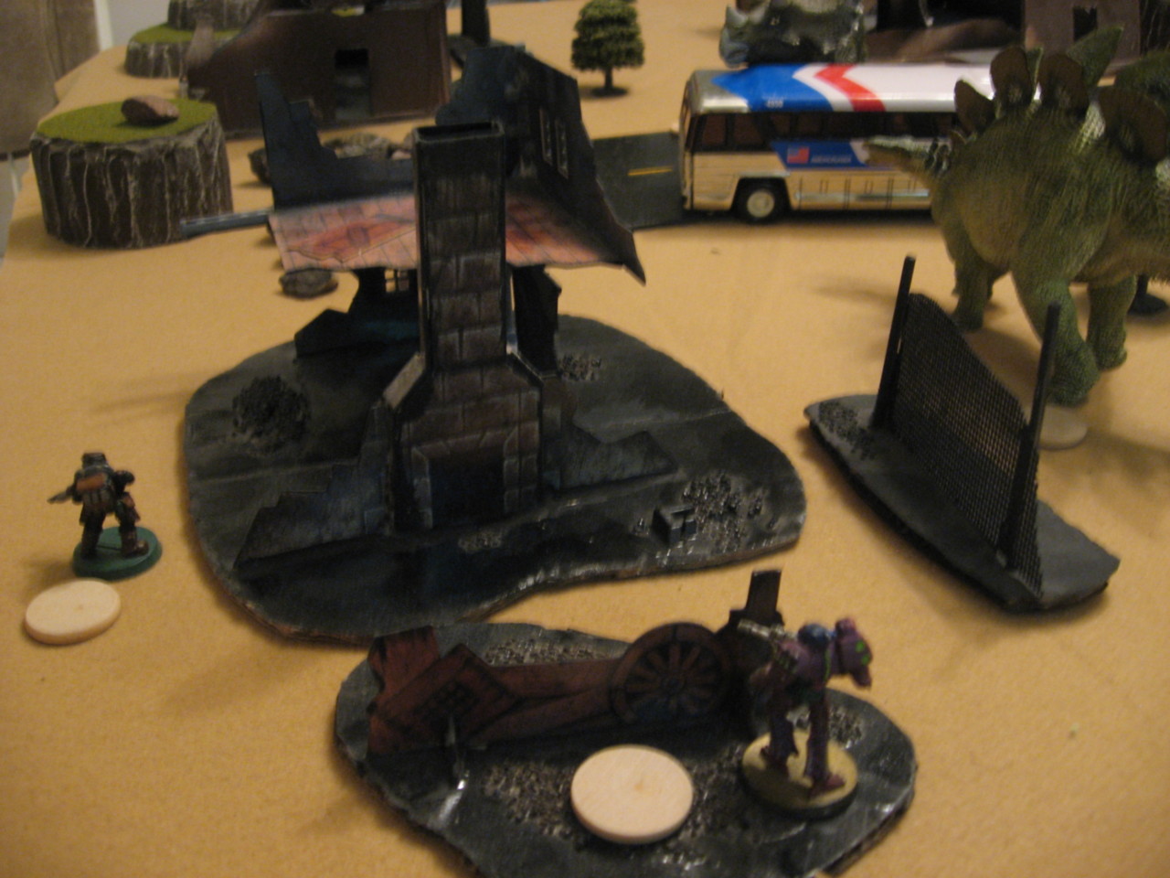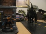 This battle was unique because I used a Dinosaur on each team, which was a refreshing change. Also I went for a pretty high level of IP and ND, 190 and $1,900 and 6 Traits in fact. This is equivalent to around Level 3 or 3 1/2 in the old rules, so definitely a lot of power on each side. The fact that I used expensive dinosaurs certainly toned down the equipment involved, but there was still plenty of exotic weapons. Also I took a ton of pictures since the game was pretty long and I found both Posses looked great when photographed in different combat situations.