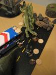 – Newt moves behind bus, shoots Thunderfoot at short range, hits 2/2 with double 11s, does 4 damage and Slowed