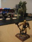 Stone Axe was the muscle of the group, and I spent plenty of IP and ND to make him into a true beast. Terrific movement (7″) and very high Armor (3) and HP (13) meant he could tear around the field. I visualized him and Coleman playing the “good-cop, bad-cop” routine on uncooperative caravans.