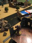 Duskhelm: I didn’t want to have Duskhelm sitting around forever, so I moved him from one patch of cover to another, this time behind a ruined chimney of a house. He fired at long range against Zira, hitting 5/6 times for 6 total damage. Still a ton of HP to chip away.