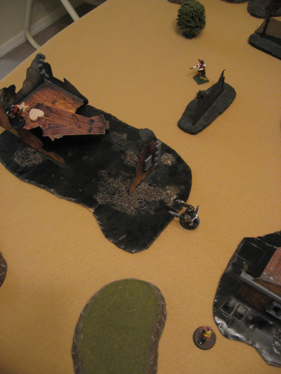 Duskhelm: Huh, that’s too bad about Thunderfoot being pushed out of his distraction role. Oh well, next turn I can get him stuck in again. Anyways this Activation was used to have Redbeard Reload his Musket, since it’s “Auto” so I can only fire every other turn with him. At least it was inexpensive and has other nice features.
