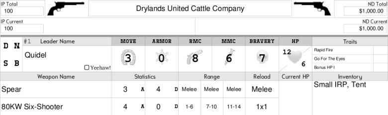 Although I haven’t had a ton of time for additional playtests, I have gotten to work at making the Posse Roster a fillable PDF form. This will be handy for those with small, cramped writing, or for people who are used to creating their sheets that way.