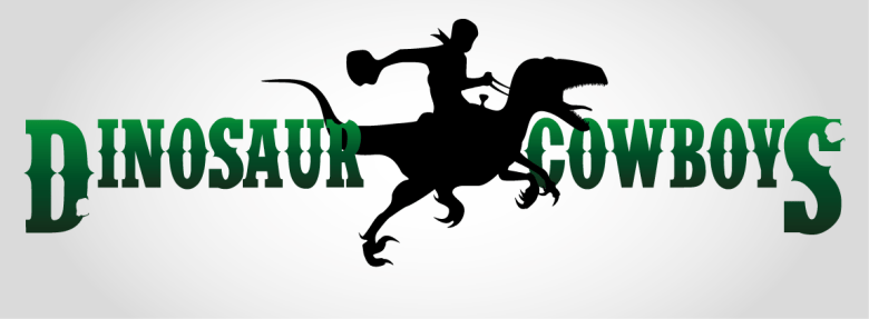 Today I have a real treat thanks to a fan of Dinosaur Cowboys named Felix. He’s a graphic artist who was inspired by the rules and setting, and so far has made a nice new logo for the game. The first draft is posted below, so let me know what you think! I’m hoping he’ll produce some more artwork and I can use it in the rulebook instead of the old sepia images I had planned to use before.
