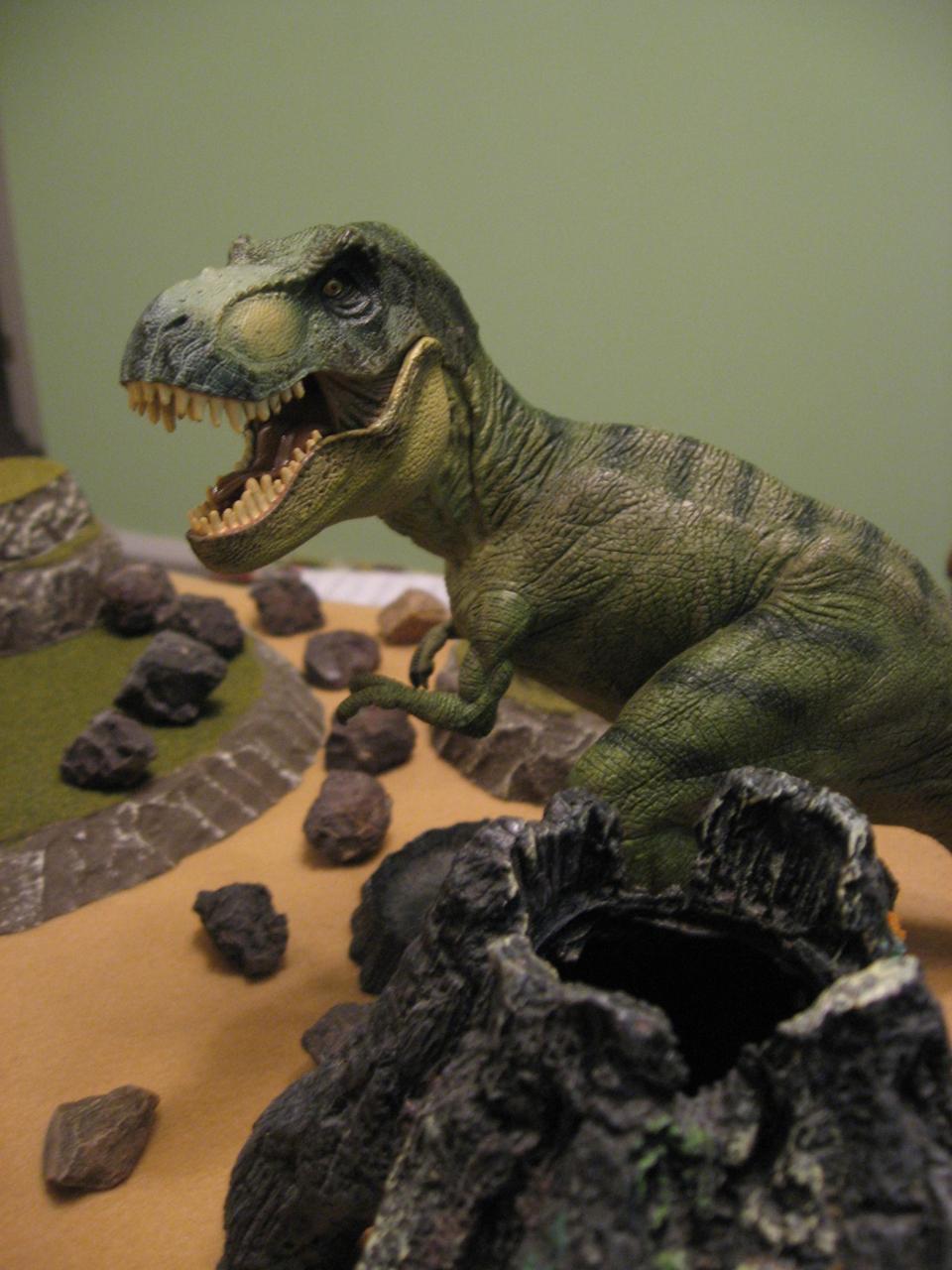 - T-Rex Runs 8"+5" forward, ends right near volcano.