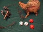 Blood: Time to move my last two entities for the turn. Most of it would be Fleeing after Bloodscar’s untimely death. Illit’taex Fled back, almost to the table edge in fact, and then reversed and Ran towards Limeskull’s hill. If he managed to survive another turn I’d get into melee with the leader. Then Sendar also Fled away, but used her Action Phase to apply the Small IRP for +2 HP (could have been a better roll, alas).
