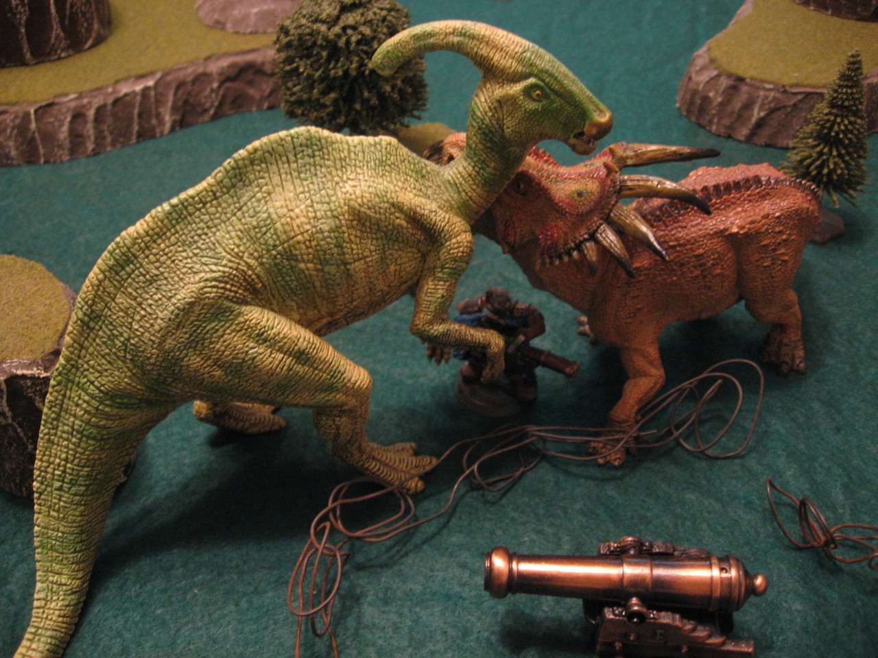 The smallest objective and totally change the feel of a game session, and adding a Cannon into the middle of the map certainly proved this. The little metal Cannon figure is actually from San Juan off Puerto Rico, and I bought it at an old Spanish fort down there on my cruise holiday. Dinosaur Cowboys is always on my mind and it was the perfect size for the game, so I’m happy with how it looked in this game.