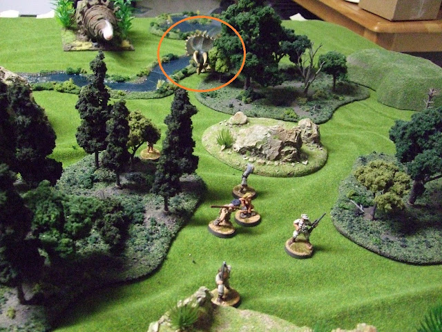 I had actually heard about Saurian Safari way, way back, but only recently remembered it as a comrade in arms to the great “add dinosaurs to improbable scenarios” genre. Think of it as rules to play out The Lost World by Conan Doyle. Except remember that his book was written in 1912 and the Victorian Era was only a decade old. The work must have been mindblowing at the time. Anyways Saurian Safari let’s people play out a dinosaur hunt, and that’s exactly what this battle report shows: