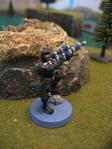 Ice moves 4” closer, clears LOS and puts Man in Black at long range. Shoots 9+ again, but misses all.