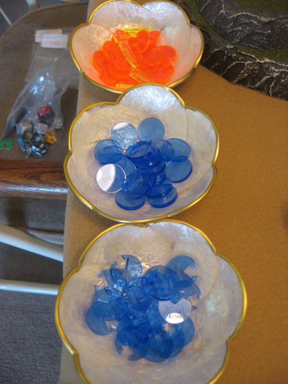 The Litko tokens I had made were really great and lent a very professional feel to the game. I do have one regret and that was making a set with the text “Move & Acted” on it instead of “Moved & Acted” (both past tense). Minor grammatical error but now that I’m noticed it I can’t unsee it, haha. But yeah the different colors and shapes worked well for easily seeing status on a character, and upgraded the game from the real homebrew feel my old wooden tokens gave.