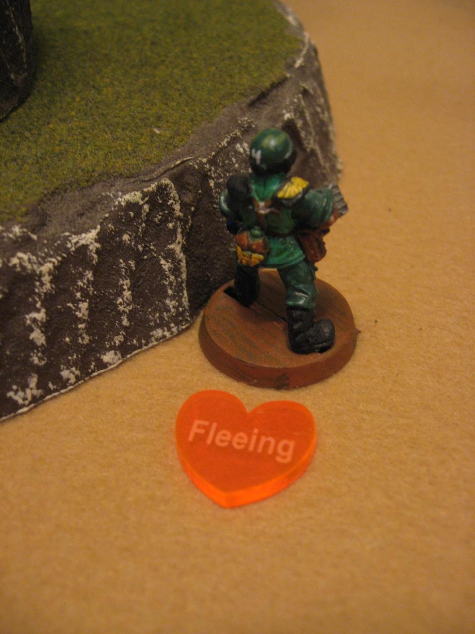 – Sis tries to Flee but is backed into a corner (could only Flee 2″ but needed 4″), so she is Stunned instead. Stays where she is.