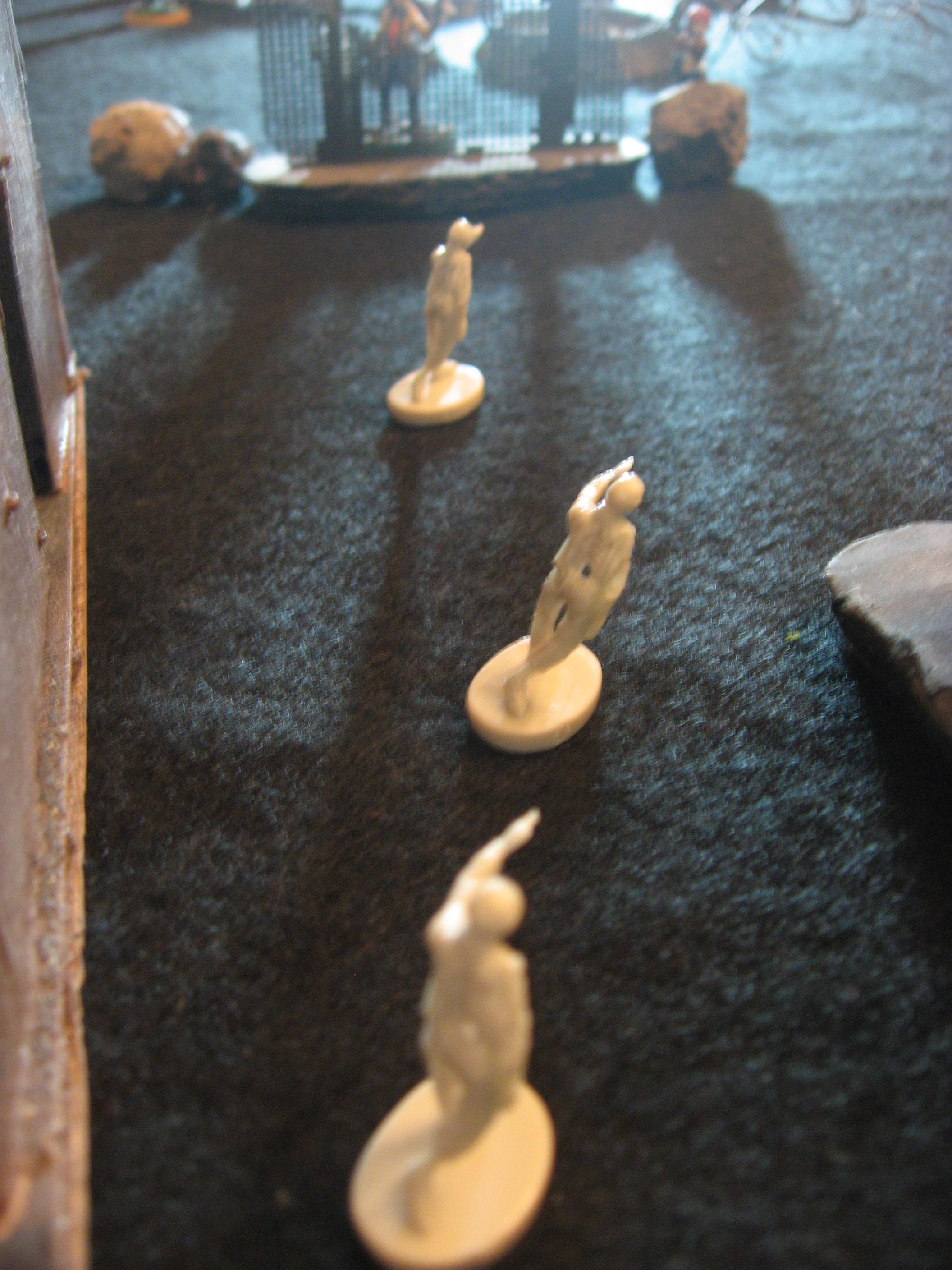 Undead: At this point the Undead in the Bunker were Spawned with three rolls on the Undead Generation Chart. The result was 9 Pioneers and 3 Savages, who were deployed throughout the tunnels.