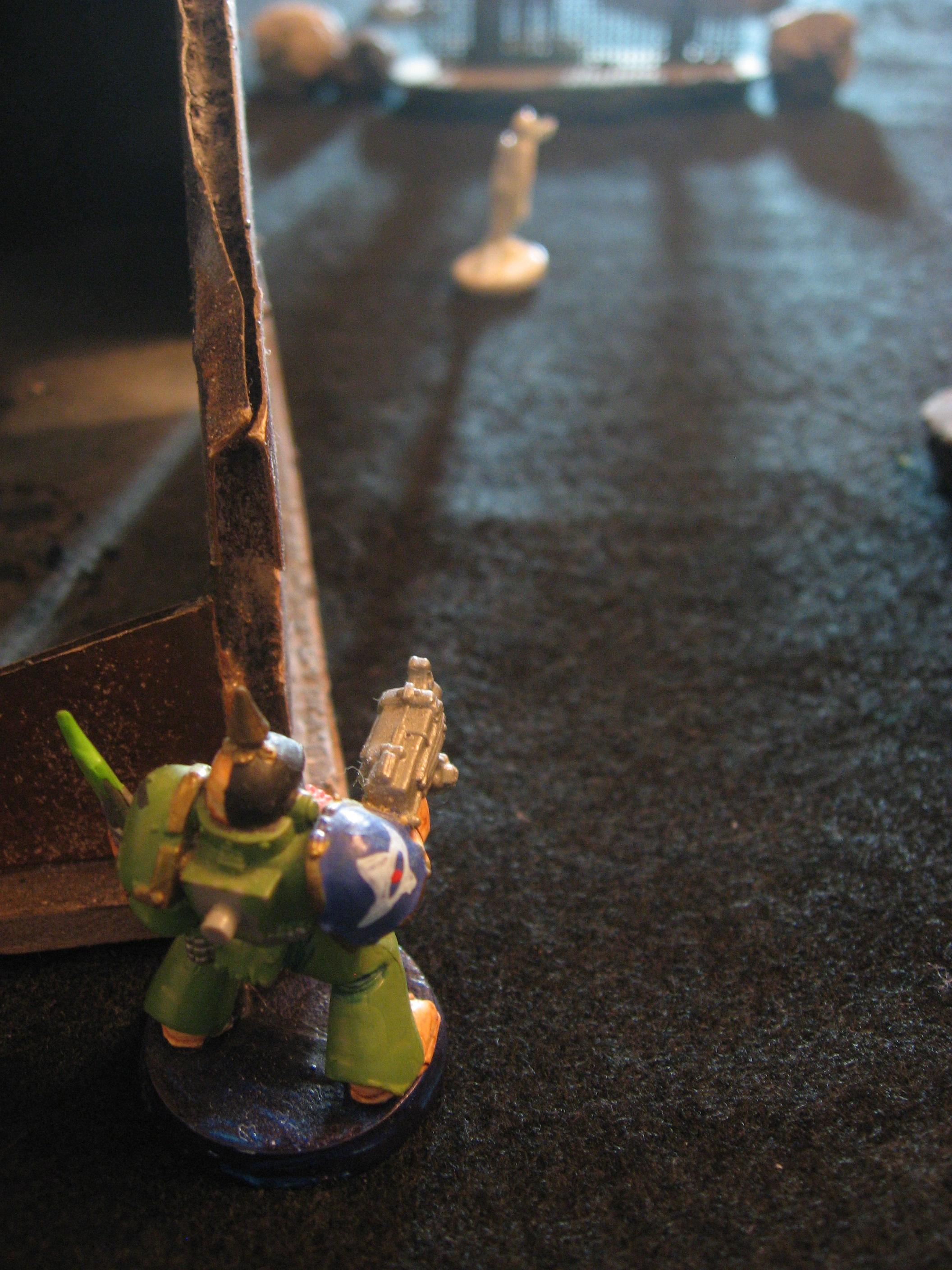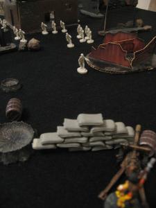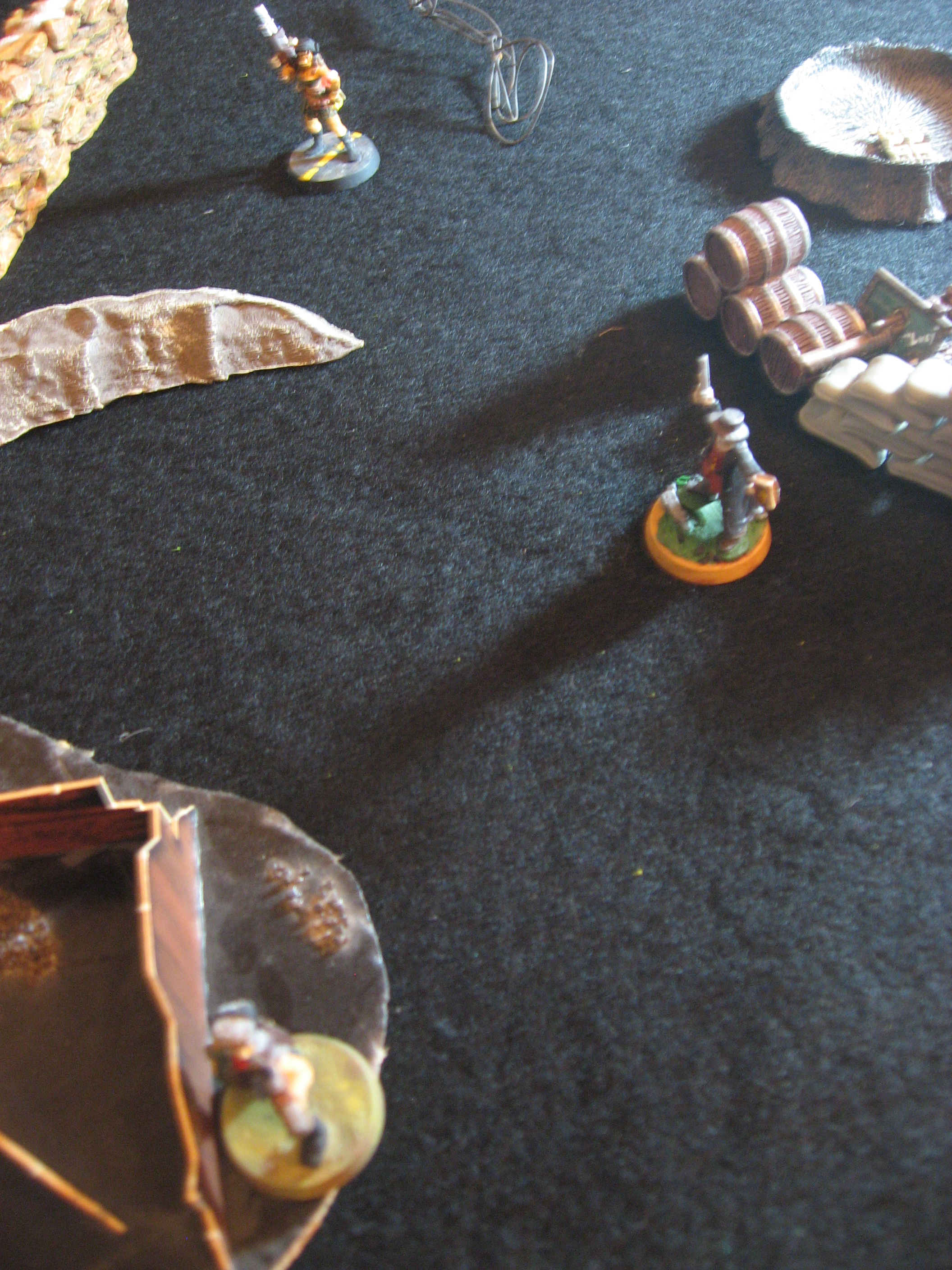 T2: The firing continues in earnest. Coyote and Vlad kill a Savage each, easing some of the pressure of impending melee. Alson and Trista keep up without any problem, both killing a Pioneer. Gin feels left out so he leaves the Cannon emplacement and Runs forward. Mace continues his Run, stopping just past a wall.