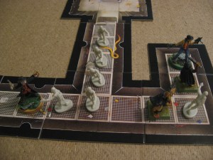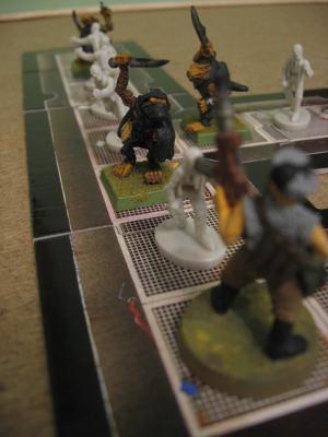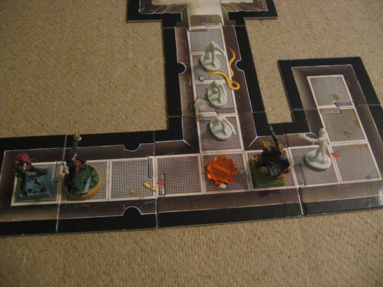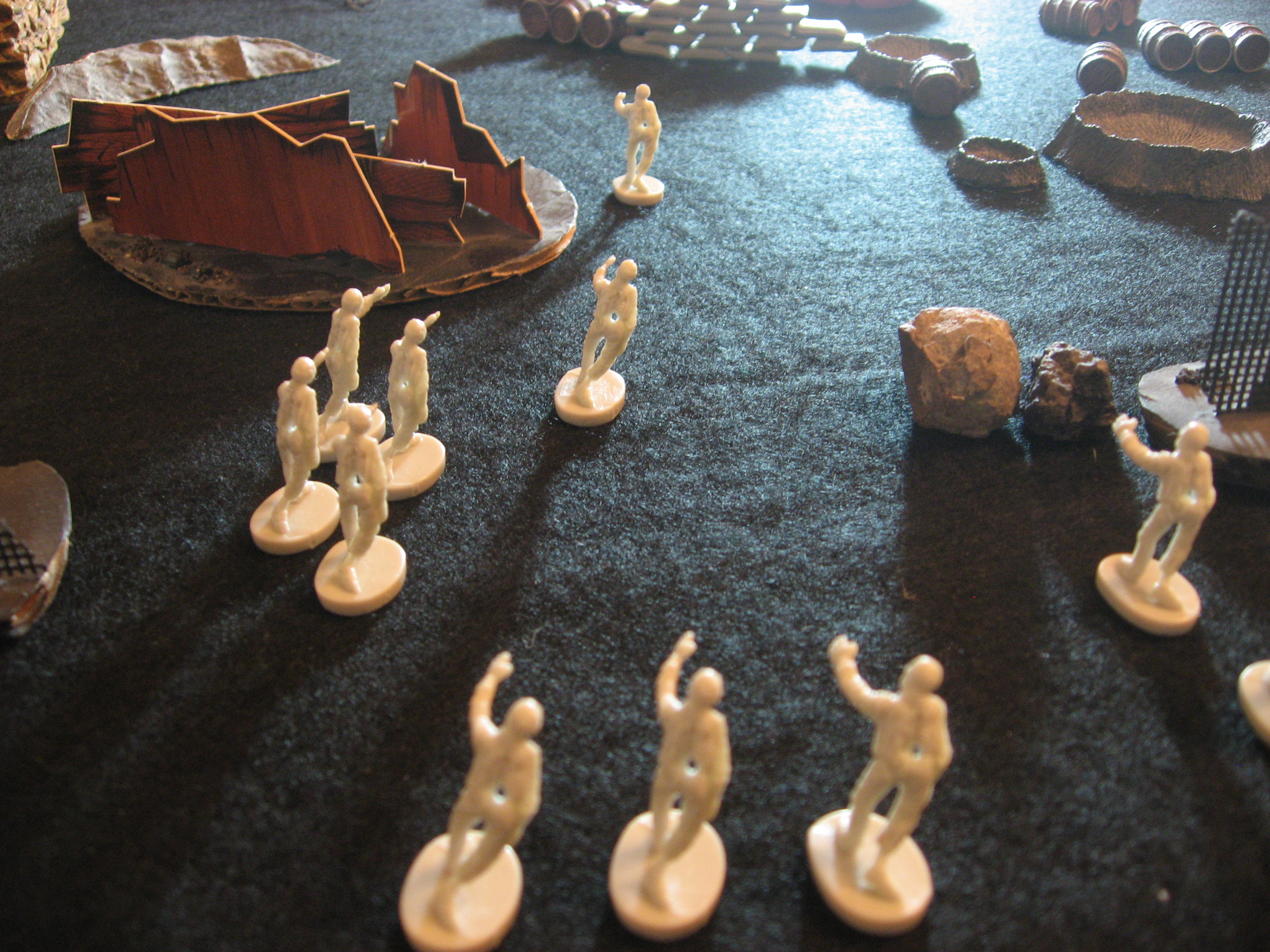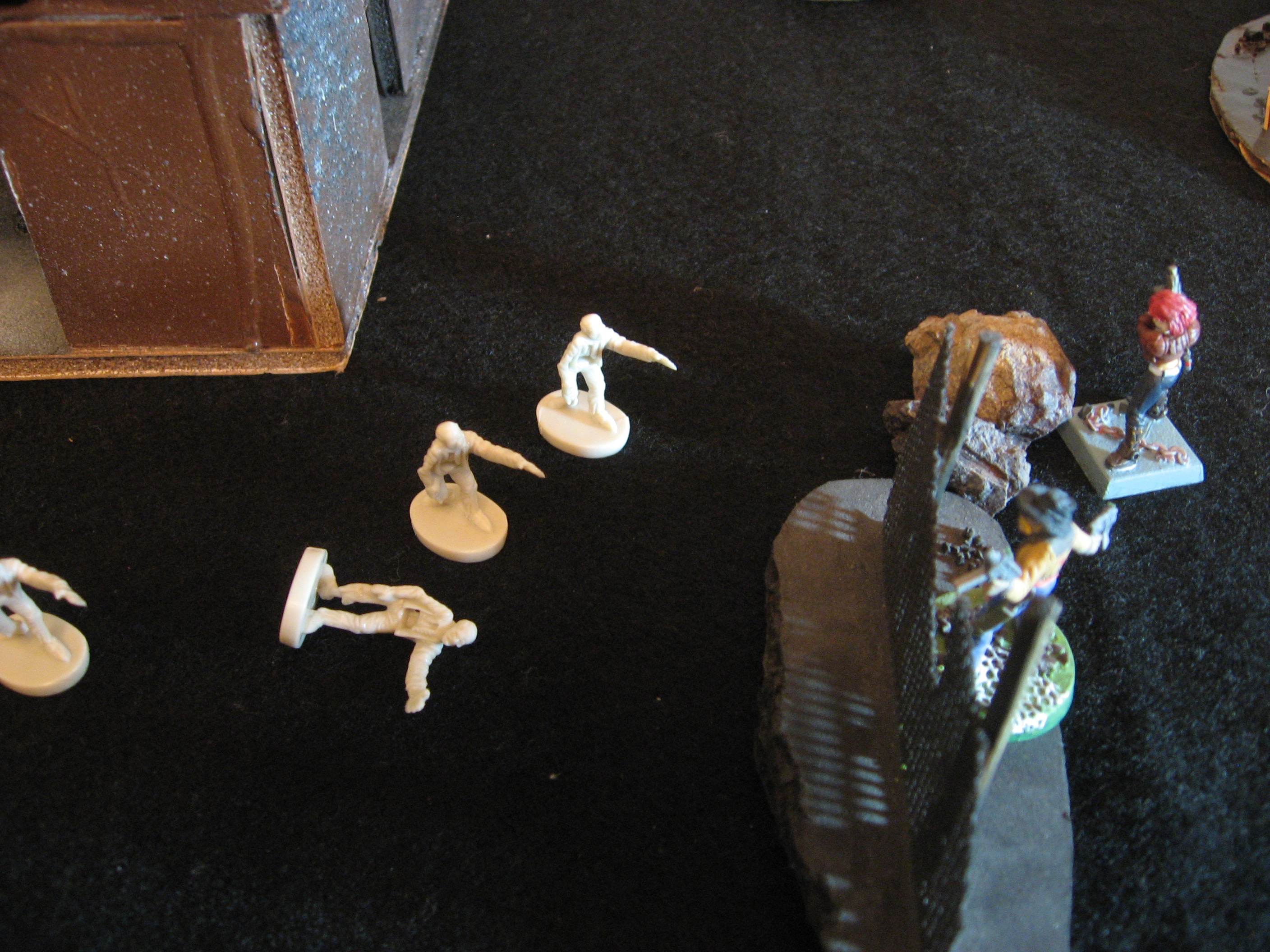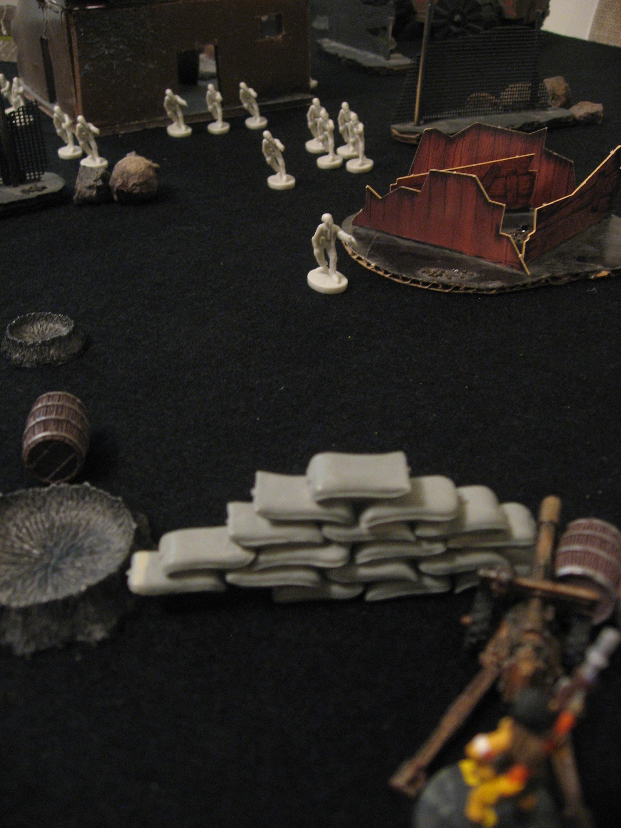 Undead: Three Pioneers scratch, claw, and stab at Mace, but only one hits for 7 damage. The Pioneer in the Bunker facing Gin misses the dauntless Priest. And with the worse luck for the forces of darkness BOTH Spawn rolls result in nothing!