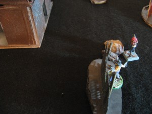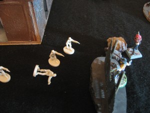 After dropping their targets everyone moved forward…well, except for Gin. He hung back on the Cannon, just in case a quick retreat was needed. Mace Mate lumbered forward, his slow 4″ Run getting him ever closer to crushing Undead flesh.