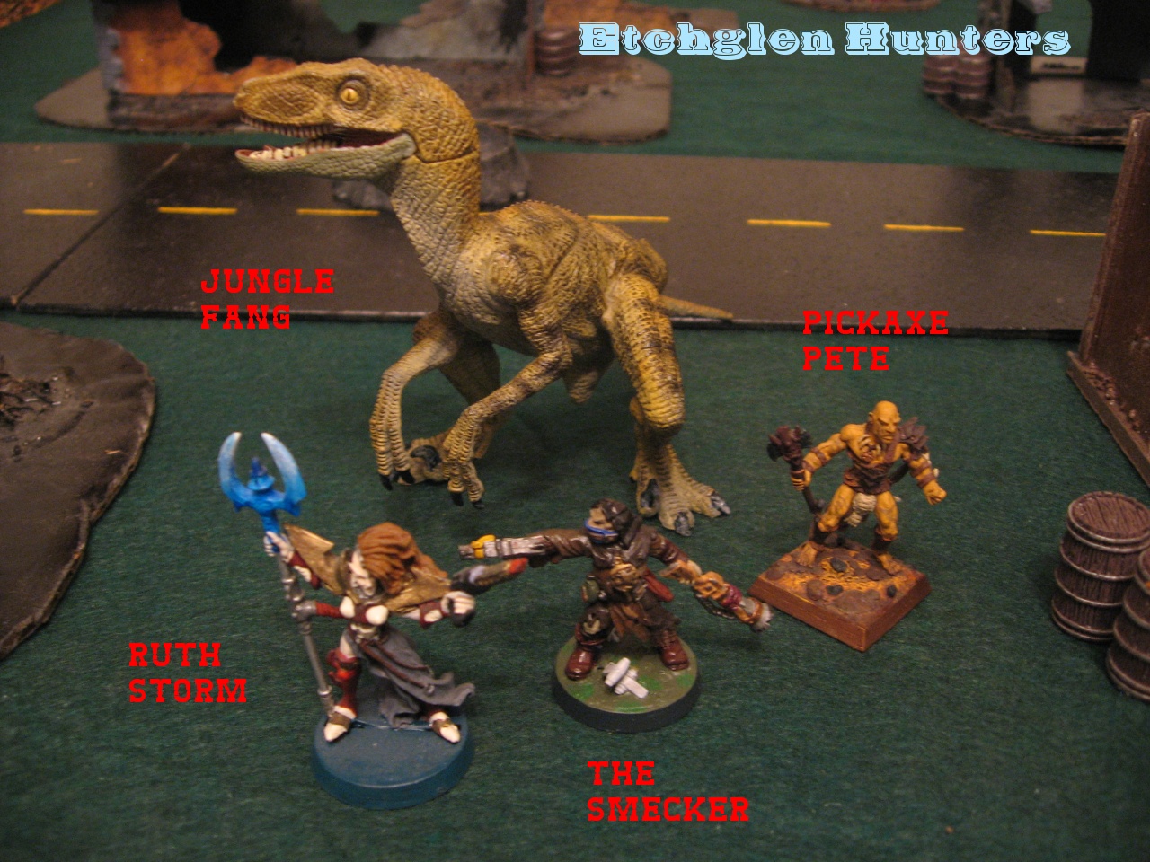 Pictured above are the Etchglen Hunters, a local posse that poach dinosaurs in the jungle south of the town. Download their PDF posse roster