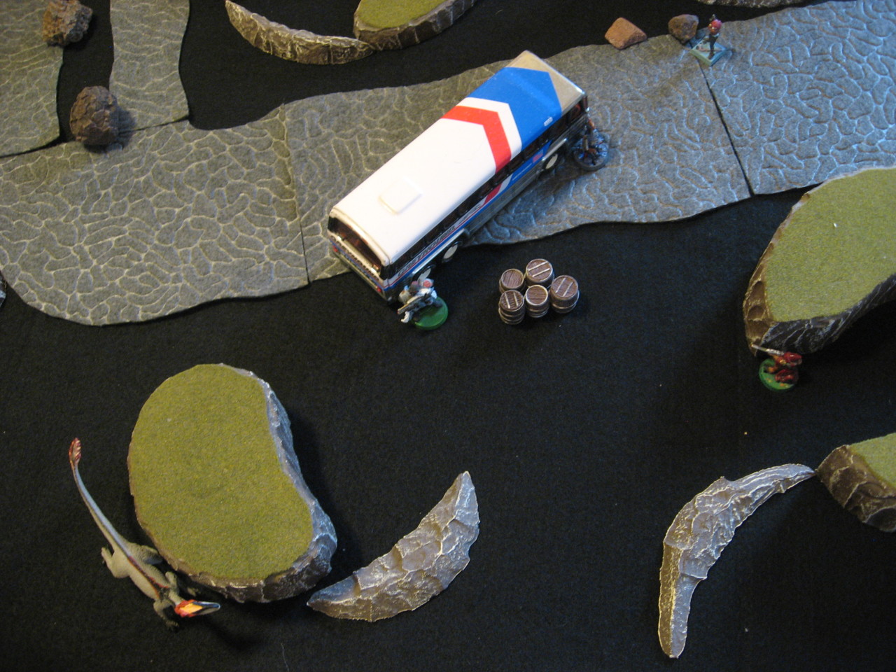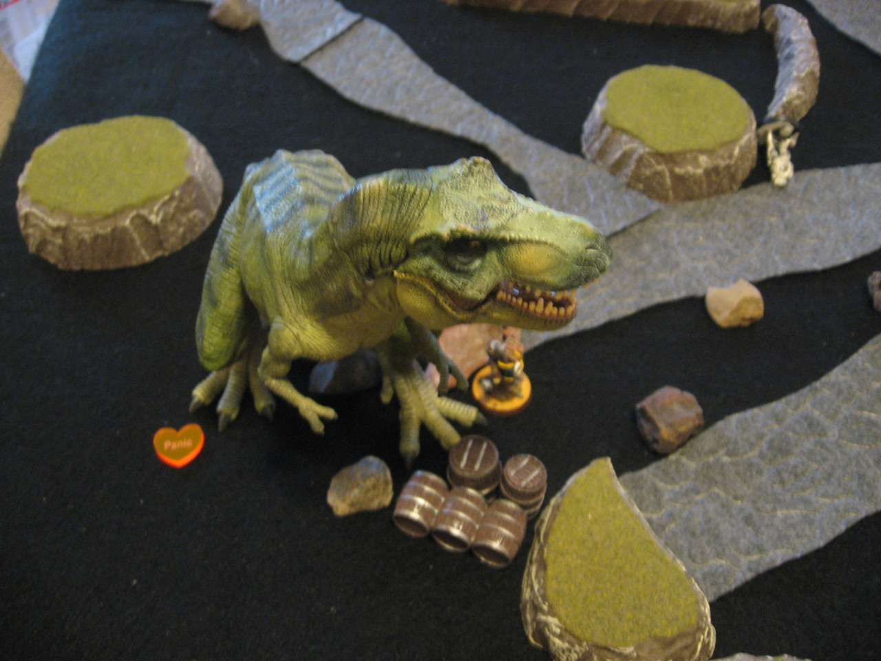 On the south part of the table Quidel and Zeus duked it out around the third cask, with Quidel barely slaying the mighty dinosaur before the T-Rex could tear apart the cask.