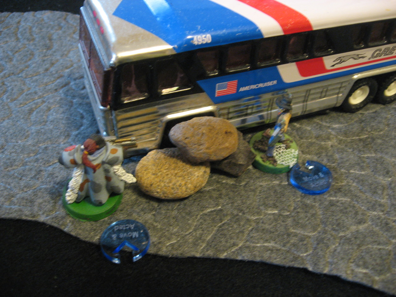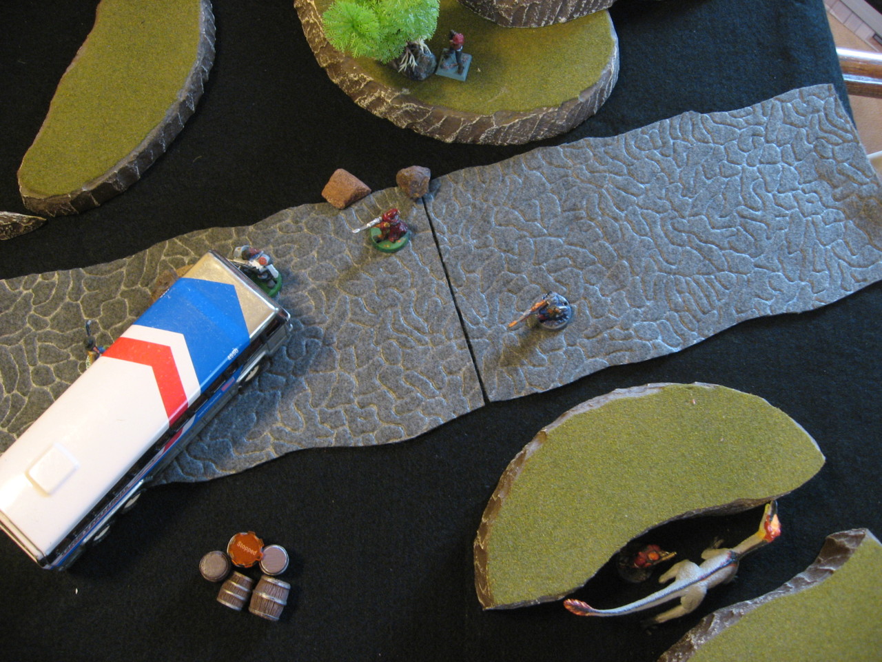 There was a great fight around the bus (as usual…that bus is awesome as a focal point), with plenty of moving and position for the best shot. Dwaal had rushed forward to try to slow the cask damage, so he proved to be a useful distraction.