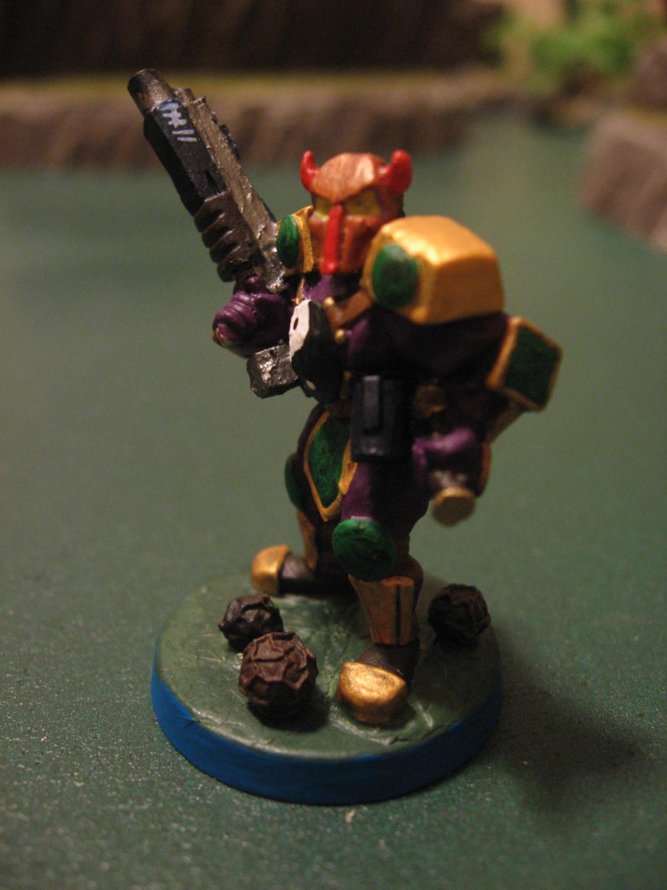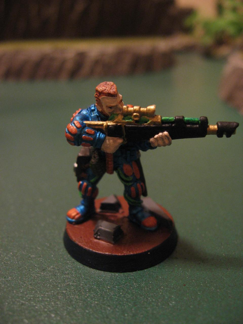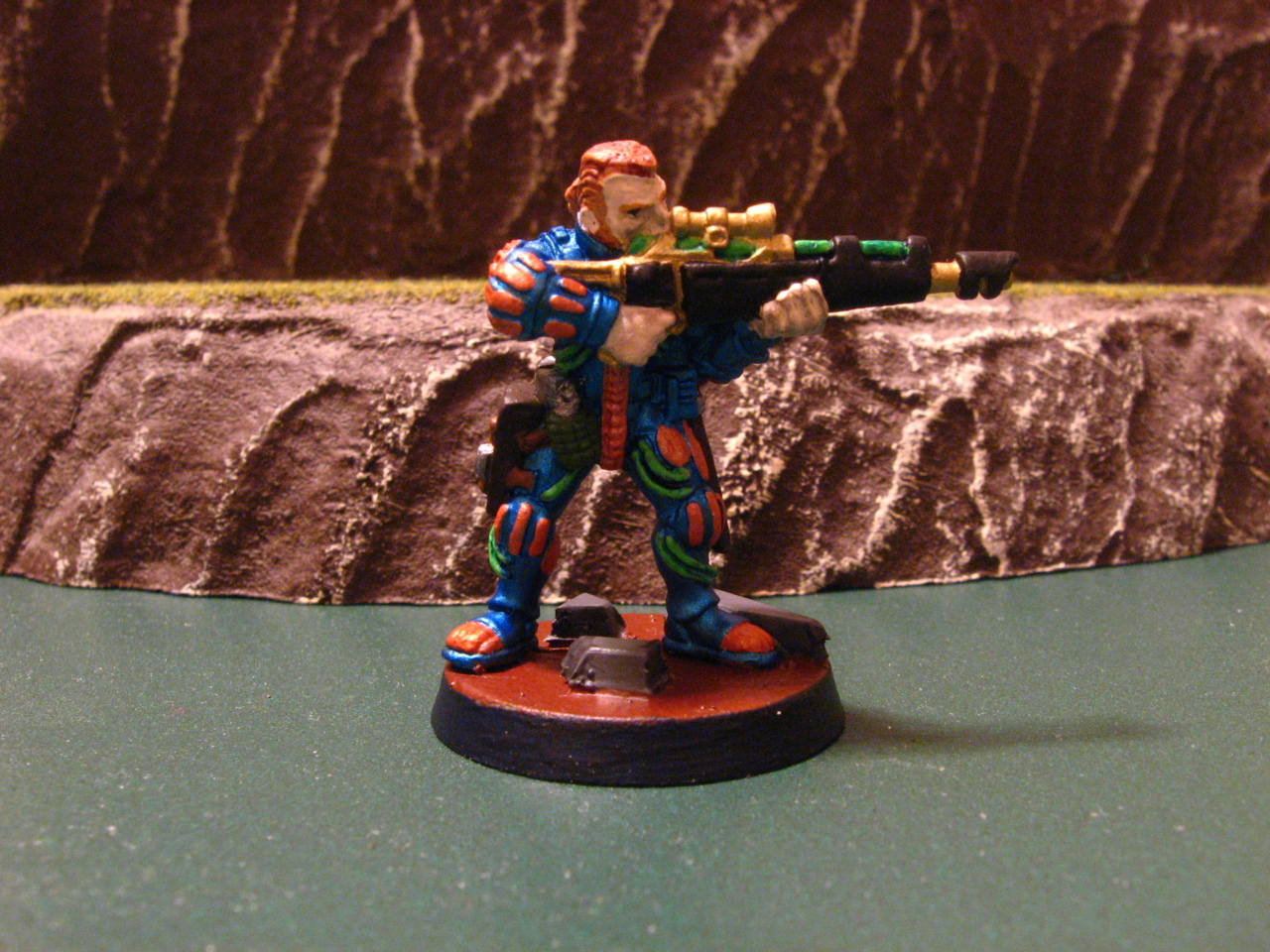 Before you look at this first miniature, I want to confess something. When I made the Neotechnoist allegiance I had a lot of imagery in my mind, and some of that was from Games Workshop’s Necromunda faction called the Van Saar. They are basically high tech nobles with super cool suits and laser weaponry. I’ve have this mini for a while, since I bought a few Necromunda figures off Ebay a long while back. But I finally sat down and painted him.