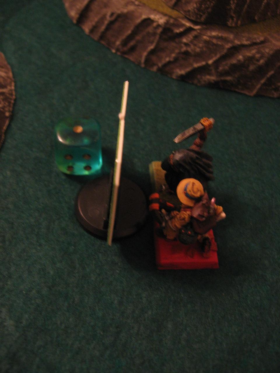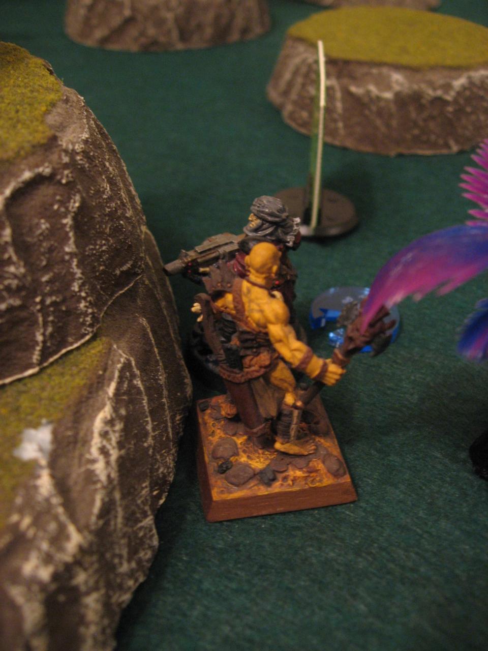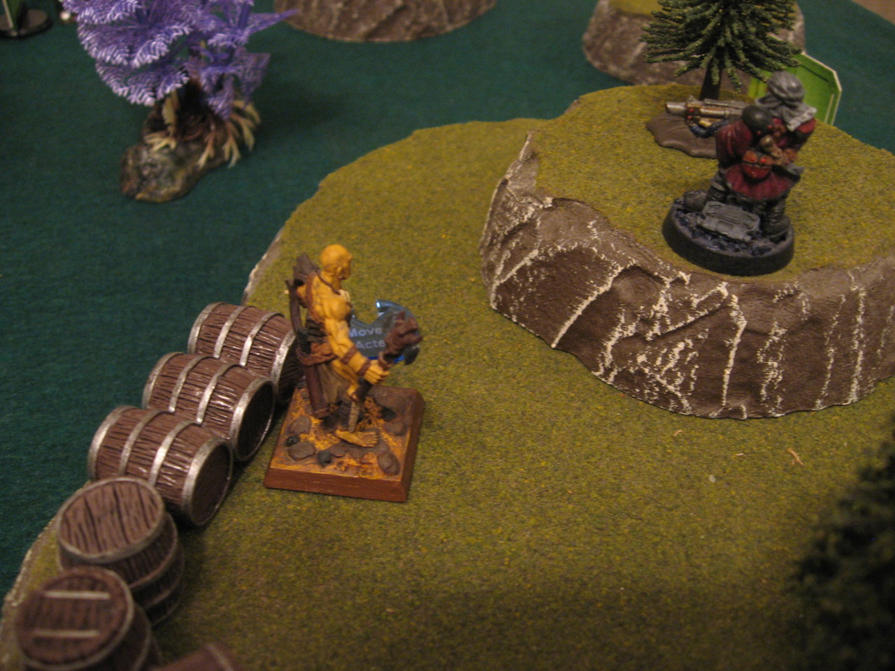 Vanguard is still trying to hold his activation, so Skull Basher runs away due to Fleeing, then tries to Hustle back. Certainly not the most effective posse member due to spending half the game herding an objective, then getting shot in the face when it’s time to chop things.