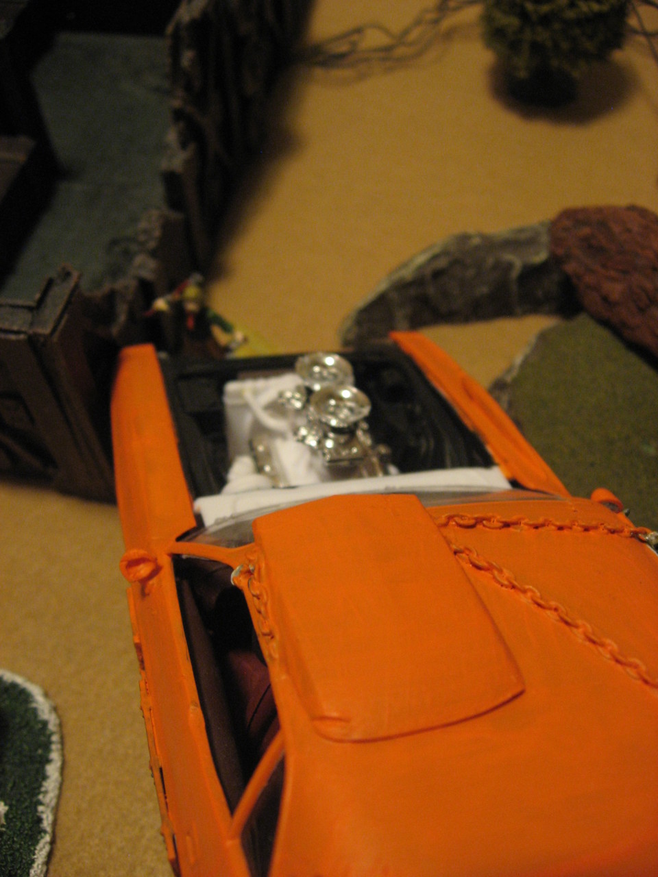 As for Features a few “Weapon Emplacements” were used as part of the airplane. Specifically a Flare Gun (represented by the black minigun on the model), and a pair of Wagon Blazer equivalents (basically flamethrowers) which originated from the missiles hanging under the swing wings.