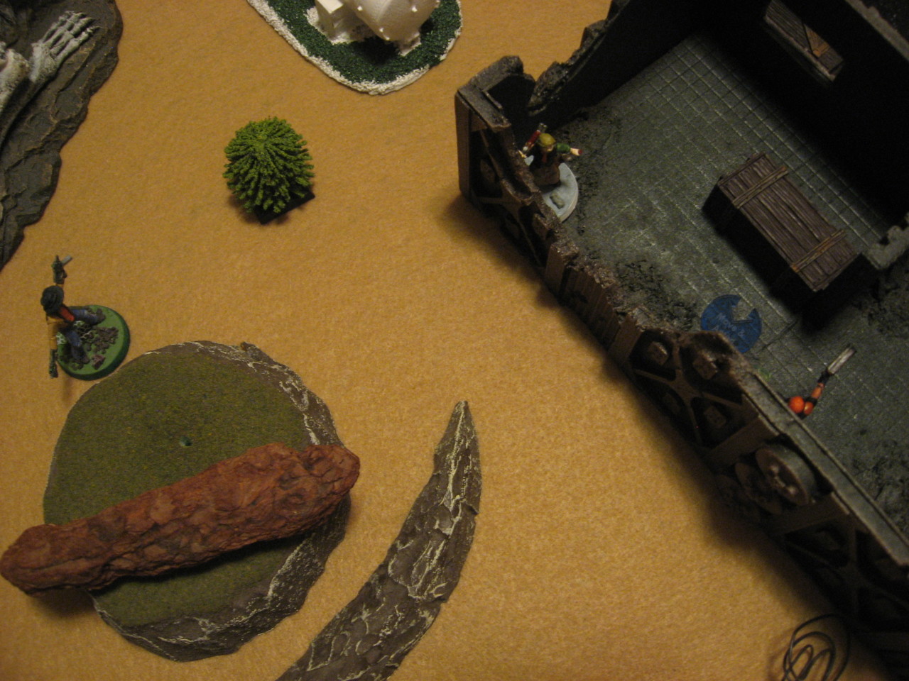The first turn more or less nullified the Secret Objectives, which was kind of funny. Pale Rider and Alexander Keith were able to destroy the engine parts objective on their side of the table. And Skull Basher grabbed the black box on the other.