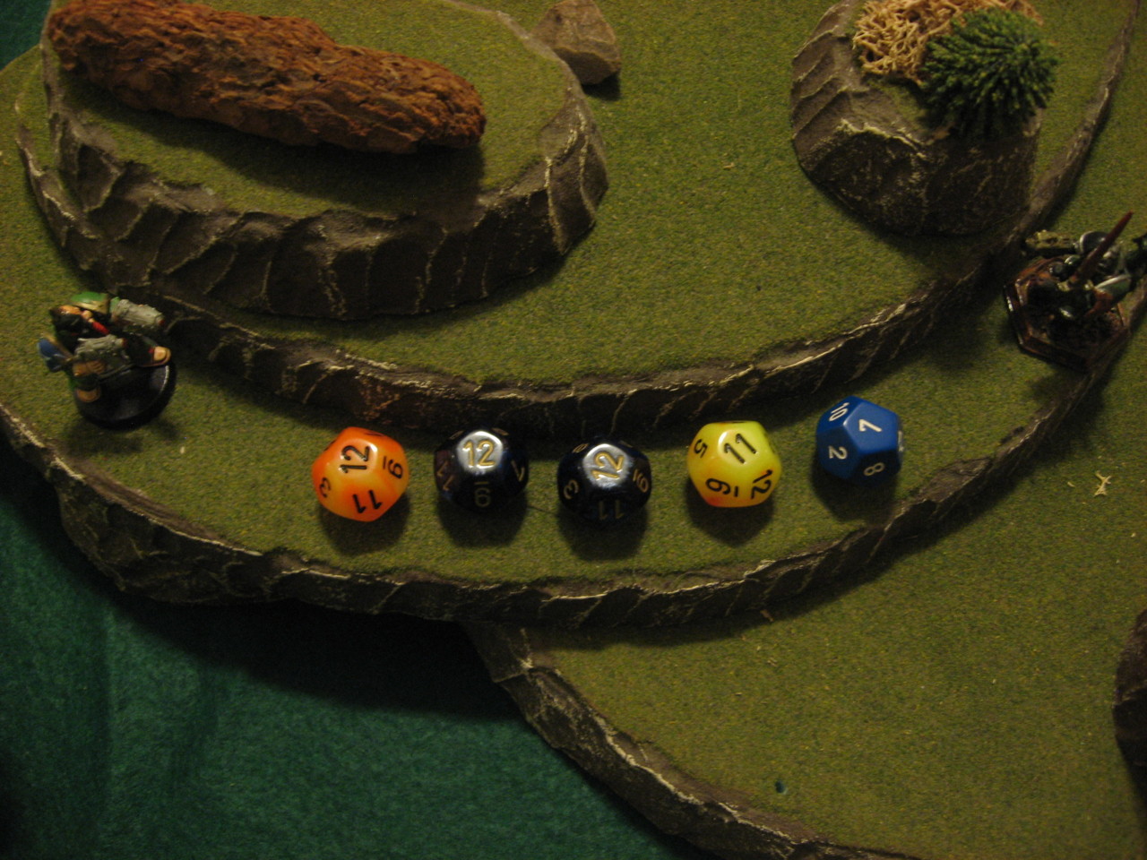 So far Dominator has been called a defector. But from the Delta Commando Squad point of view, he’s a stone cold traitor. The voodoo of dice agreed, as Bloodthorn lined up a pretty tough shot from his elevated perch. Then proceeded to 1-shot Dominator with an amazing roll. He hit for 10 damage, and Dominator only had 8 HP. So that was a surprising turn of events.