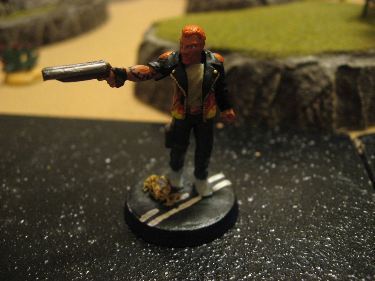 And finally is another Games Workshop mini, of course not even remotely recent (screw those prices!). Best I can tell this guy is a Rogue Trader (ie: Warhammer 40,000 first edition) era mini, some kind of Imperial settler or colonist. Either way he basically looks like a farmer Han Solo, and certainly has a dated look to his sculpting (such as his bulgy jacket and squat stature). Great pistol though, and I decided to paint him like an RCMP / Mountie, which just semeed to fit for some reason. So that meant a blue stripe on the pants and a red jacket. His shirt, while not a wild color, turned out nicely with the copper buttons.