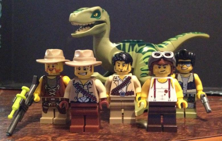 Boom, it happened, I finally sat down and played Dinosaur Cowboys with Lego Minifigs like I’ve been meaning too since September (jeez has it been that long?!?!). I’ve had all these Lego buildings sitting around just waiting to go. So last week I set everything up, scrounged up enough vaguely weaponized Lego pieces, wrote two full 5 man + 1 dino posses, and played (using v2.5 of the rules). Of course the town used here is different than the one I took pictures of in September, obviously because I’m not going to leave the first town setup for ~6 months haha. I have a few Lego fences and trees that also made an appearance in addition to my normal terrain.